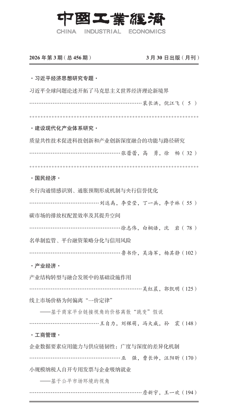 来源:《中国工业经济》2026年第3期