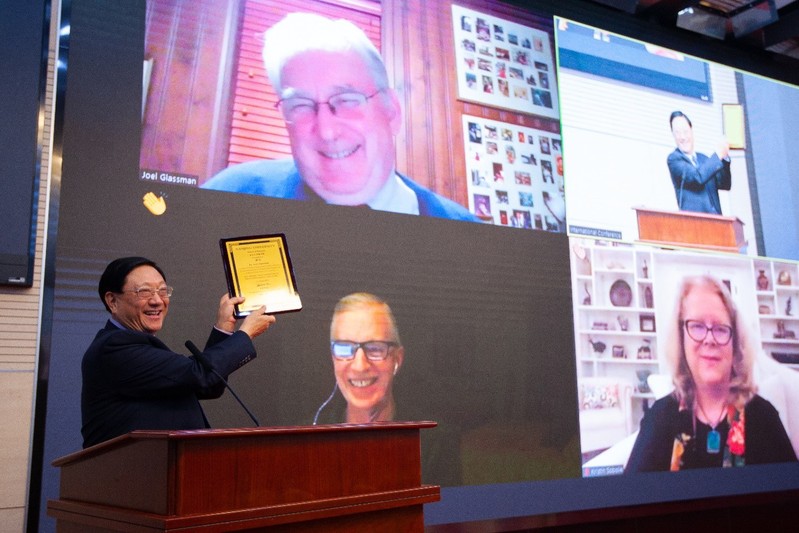 赵曙明教授为乔尔·格拉斯曼博士与约翰·德莱尼博士颁奖