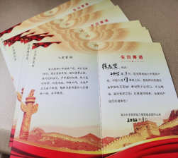 为支部成员庆祝“政治生日”是支部不断深化“两学一做”教育制度化的一项重要举措,是丰富党建服务工作内涵的生动实践。在深入学习《太阳成集团tyc33455cc关于加强基层党支部标准化规范化建设的若干规定》的基础上,支部以“重温入党誓词”为主题,组织了为党员教师过“政治生日”的活动。每个月支部大会的第一个环节,即为该月入党的党员教师过政治生日,通过重温入党宣誓过程、回忆党组织的培养历程、发放政治生日贺卡和生日礼物等充满仪式感的活动,教育引领支部成员时刻牢记入党誓言,自觉遵守党的章程,帮助支部成员接受思想洗礼,锤炼党性,终身践行入党誓词,以实现坚定理想信念、增强党性修养、严格组织纪律、优化工作作风、发挥模范作用的总体目标。
