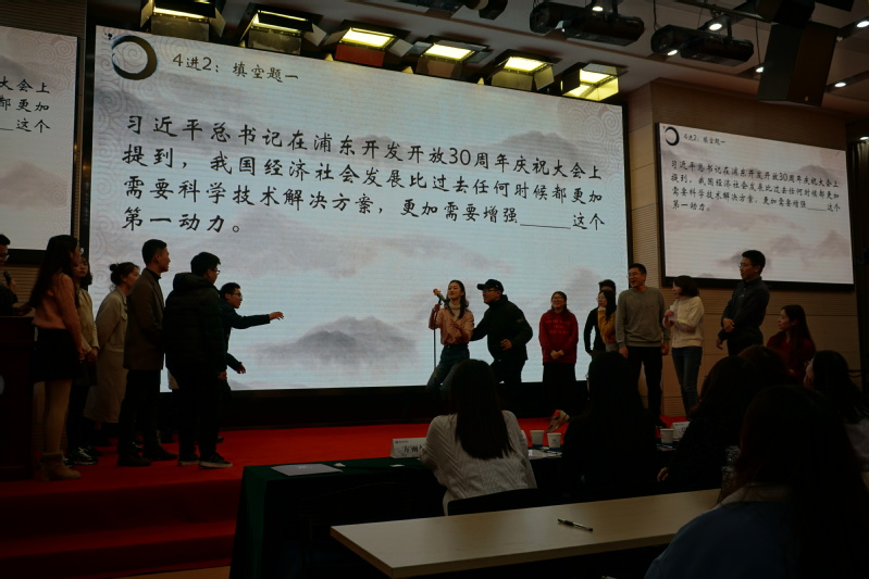 时间悄然划过,转眼来到总决赛环节。这一环节要求选手根据给定的图片以及描述,在十分钟的准备之后,进行为时三分钟的即兴演讲,难度很大,极其考验参赛选手的临场反应能力。精心录制的歌曲视频播放完之后,双方依次上台演讲。虽然时间仓促,但是同学们表现出了极强的思辨能力,条理清晰,娓娓道来。第一队从身边的案例切入,然后顺理成章引出自己的观点,最后给出了一些建议。第二队从两部分阐述了自己的观点,现象与理论相结合,并给出了三点建议。双方不分伯仲,势均力敌,最终,经过现场评委的投票,研究生管理博士党团支部联队和本科生大四党团支部联队并列第一,双方辩手均获得“最佳辩手”的称号。到此,本次党团知识竞赛圆满落幕。