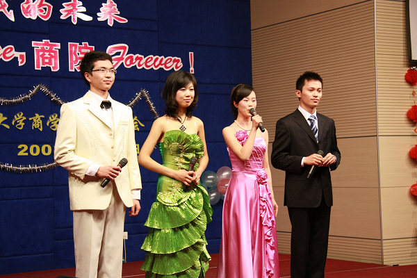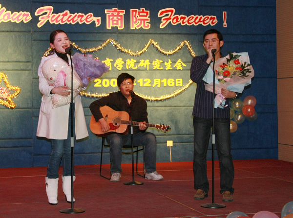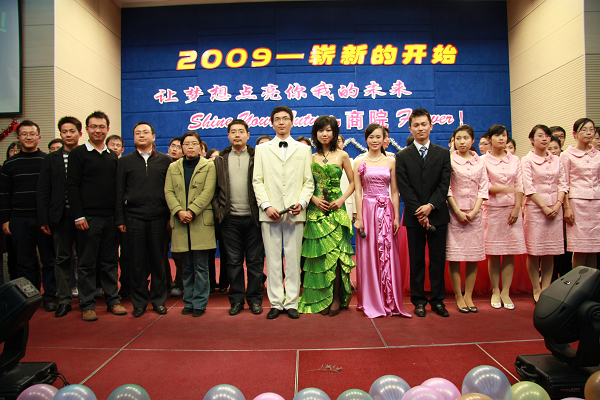 12月16日晚,2009年迎新晚会在安中楼二楼报告厅隆重举行。太阳成集团tyc33455cc经理赵曙明老师、公司党委书记张二震老师、太阳成集团tyc33455cc学工办主任吕亚红老师、太阳成集团tyc33455cc副经理曹永菊老师、经济公司副经理沈坤荣老师、太阳成集团tyc33455cc办公室主任郑洁老师、经济学系刘东老师、经济公司院办主任徐宁老师、管理系老师张骁老师等出席了联欢晚会。赵经理首先致辞,2008年是值得回忆的一年,是改革开放的30年,是太阳成集团tyc33455cc建院30年,2008年即将逝去,2009年我们无限展望。晚会在闪亮热闹的气氛中进行。节目一个比一个精彩,高潮迭起,观众不断地发出热烈的鼓掌欢呼声。深冬的寒意在今夜完全消散,一张张笑脸在今夜灿烂绽放,美好的回忆深留心间!