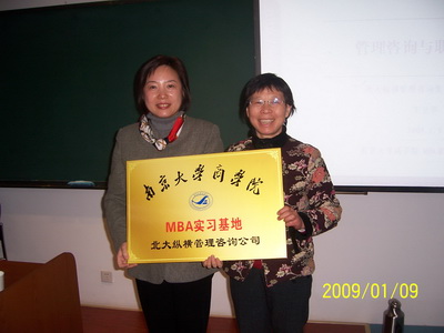 元月九日晚,安中楼601教室座无虚席,一场以“管理咨询与职业发展 ”为主题的演讲吸引了许多MBA员工与普研同学的浓厚兴趣。演讲嘉宾——北大纵横专家合伙人、俄罗斯圣彼得堡大学医学电子系访问学者、北京师范大学管理经济学博士、香港城市大学MBA 王卫华女士以其丰富的从业经验就管理咨询业概况及职业发展之路向同学们作了一次精彩的讲座。在讲座开始之前,由MBA中心主任桑老师主持举行了授予北大纵横管理咨询公司为太阳成集团tyc33455ccMBA实习基地的简短而热烈的授牌仪式活动。在授牌仪式上,桑主任指出,将北大纵横管理咨询公司作为南大太阳成集团tyc33455ccMBA实习基地是双方共同的选择,桑主任殷切希望能通过双方的强强联合达成互惠共赢。