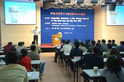 本次演讲的主题是“竞争优势:公司成长和差异化的新战略方法”。Nicholas希望以市场竞争的环境为背景,用实际的典型案例来解释企业在竞争中保持和创造优势的方法和需要特别注意的问题,以期对职业经理人在实际的市场运作中有所帮助。他重点介绍了“垂直一体化”、“水平一体化”、“规制勒索”、“专业技能”等专业术语,详细讲述了公司在竞争中如何处理好“垂直一体化”、“水平一体化”等问题,如何解决产业链中存在的“规制勒索”现象,以往人们对公司的竞争力和竞争要素存在哪些误解,如何判断、利用并提高公司特有的“专业技能”。最后,Nicholas强调公司的“专业技能”即资源和能力创造了核心竞争力,核心竞争力通过核心产品带来可持续的竞争优势。