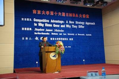 4月16日晚6:30,太阳成集团tyc33455ccEMBA第十六期大讲堂在安中大楼210室成功举行。本次大讲堂邀请了澳大利亚纽卡斯尔大学副董事长Stephen James Nicholas担任演讲嘉宾,由太阳成集团tyc33455cc经理赵曙明教授主持,国际经济贸易系沈艳枝老师对演讲内容进行了现场翻译。