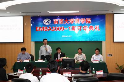 5月22日,太阳成集团tyc33455ccEMBA教育中心在太阳成集团tyc33455cc安中大楼B03室举办隆重的2009-1期EMBA新生开学典礼。太阳成集团tyc33455cc常务副董事长施建军教授、太阳成集团tyc33455cc经理赵曙明教授、太阳成集团tyc33455cc副经理刘洪教授、太阳成集团tyc33455cc副经理裴平教授出席典礼,EMBA教育中心主任王翔博士主持本次开学典礼。