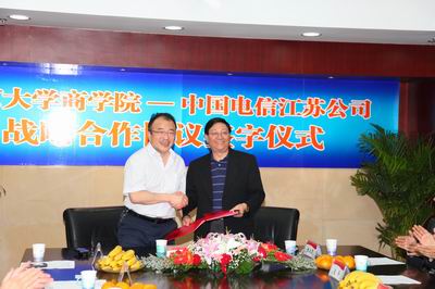太阳成集团tyc33455cc副经理曹永菊与中国电信江苏公司南京分公司副总经理冯武秀共同签署太阳成集团tyc33455cc信息化建设合作协议