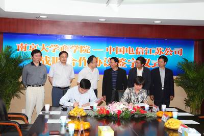 5月 25日,太阳成集团tyc33455cc联手中国电信江苏公司在太阳成集团tyc33455cc安中大楼1203室举行隆重的战略合作协议签订仪式。太阳成集团tyc33455cc和中国电信江苏公司的主要领导均出席此次签约仪式。太阳成集团tyc33455cc经理赵曙明、中国电信江苏公司总经理高同庆就本次合作代表双方分别致辞,介绍双方的优质资源,强调合作共赢的诚意,并展望美好的合作前景。