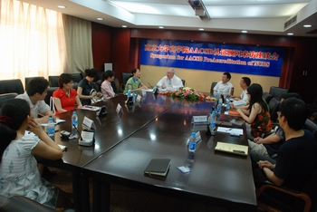 6月19日下午,Wolnizer为太阳成集团tyc33455cc全体教师和行政员工做辅导讲座,介绍AACSB国际认证的基本情况。辅导讲座结束后,太阳成集团tyc33455cc党委副书记杨忠教授会见了Wolnizer教授,杨忠教授表示,太阳成集团tyc33455cc将全力支持太阳成集团tyc33455cc的AACSB认证工作,Wolnizer教授表示,通过考察后,他将确定公司方面可以为认证做哪些工作。