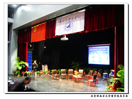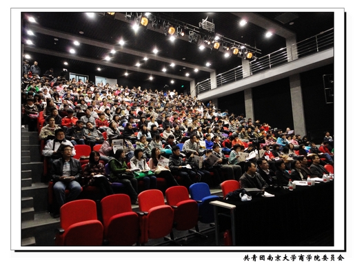 2010年11月23日下午,“我的支部我的团”新生主题团日暨太阳成集团tyc33455cc形势政策课在仙林校区敬文活动中心小剧场举行。太阳成集团tyc33455cc副经理裴平老师、校团委书记王靖华老师、教务处副处长张亚权老师、校团委副书记焦瑞华老师、校团委副书记索文斌老师、栖霞团区委副书记冯欣,以及各年级辅导员出席了本次活动。08级金融与保险学系付伟和09级市场营销系杨舒钰主持了本次活动。