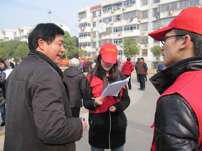 首次活动以“学雷锋”日为契机,服务对象定位于燕子矶街道社区居民,以金融知识普及为主题。同学们利用寒假期间开展社会调研,了解居民需求、收集金融产品信息,制作了金融手册及展板,内容包括:假币的识别、金融产品的类型、主要理财产品介绍、使用金融产品的风险及预防等。同学们在活动现场讲解了识别假币的若干窍门,根据当地居民的实际生活和收入水平对市场上流行的股票、基金、分红保险等金融产品做了适当的讲解,就百姓们关注的问题,如银行产品的盈利性、资金的流动性等进行了一一解答,并帮助居民联络银行相关工作人员开展咨询工作,解决了咨询居民在生活中遇到的金融难题。