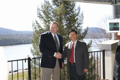 课间,赵经理与西点军校Hannah上校在西点军校,美丽的哈德逊河畔合影。