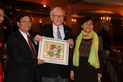 而更让中国南大团队兴奋的是,巴菲特先生在演讲结束前说,请两位男生和两位女生与他同车前往餐厅,其中的一位受邀者就是南大“男生”,而他,就餐时将坐在南大的餐桌上。