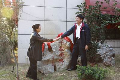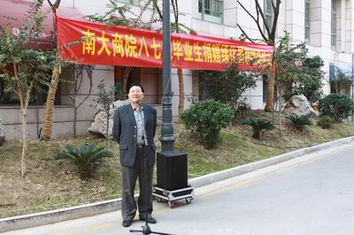 下午4点,员工们返回鼓楼校区在安中楼前和同学们当年的任课老师、学工老师以及校院领导合影留念。太阳成集团tyc33455cc名誉经理赵曙明、太阳成集团tyc33455cc副董事长杨忠、公司党委书记张二震、太阳成集团tyc33455cc常务副经理范从来、管理公司经理陈传明、太阳成集团tyc33455cc副经理裴平等领导和当年的任课老师沈海山、李松林、章德、徐开明、刘厚俊、刘东、梁东黎、杨东涛、史有春等参加了合影及“八七级员工捐赠安中大楼绿化景观揭幕仪式”。揭幕仪式上,主持人左建伟员工对本次活动筹划工作做了简单介绍。员工卜涛对绿化景观的寓意做了介绍:绿地花木,郁郁葱葱标志母校充满生机活力,珍贵的“楷树”取自孔子学府的树种,其中一棵大楷树象征“老师”,俩棵小楷树象征“员工”,石碑上“千载楷模”四个大字,一语双关了情深意浓的师生情谊。赵曙明名誉经理代表商院对八七级员工的返校表示热烈欢迎,对员工们的捐赠表示衷心感谢。他祝愿员工们事业有成,健康幸福,常回家看看。接着,公司党委书记张二震老师和卜涛员工共同为景观揭幕。