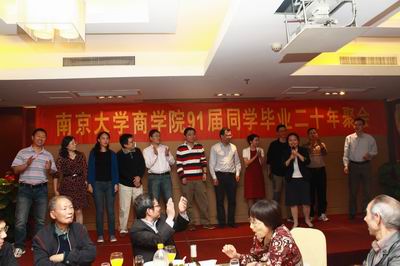 晚上,老师和八七级员工在西苑餐厅聚餐。席间,五个班级的代表、老师们纷纷即兴发言。师生们由衷地感到,二十年弹指一挥间,当年年轻的老师已是两鬓斑白,青春年华的同学们如今也已经为人父、为人母,但永远不变的是浓浓的师生情。大家都期望十年、二十年后师生再一次相聚,快乐工作,愉快生活,祝商院好,祝老师同学大家好。