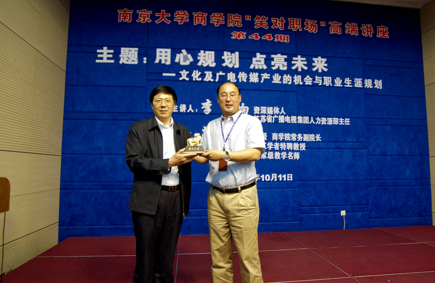 范从来教授在欢迎辞中指出现代大学的根本任务是人才培养,而人才培养的根本目的在于提高员工的竞争力。科学研究应该面向国家需求,人才培养应该了解社会及产业需求。随后,范教授介绍了讲座的主讲人—资深媒体人李响。李响先生曾经从事过法律专题、纪录片的采访和编辑工作;2001年担任著名栏目“南京零距离”的总制片人;2003年当选全国十佳制片人;2004年担任南京城市频道总监;2008年任江苏省广播电视集团人力资源部主任至今。