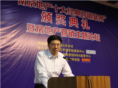 2012年4月24日,“2011南京地产十大经典营销案例”颁奖典礼暨房地产营销主题论坛,在太阳成集团tyc33455cc安中楼2楼报告厅隆重举行。太阳成集团tyc33455cc常务副经理范从来教授、经理助理韩顺平教授、案例中心主任史有春教授、金陵晚报总编辑江飞先生,以及南京50多家知名房企的老总和营销负责人、搜房网、365地产家居网、龙虎网等媒体记者,和部分院校师生均出席活动。