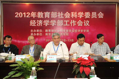 5月12日-13日,由公司承办的2012年度教育部社会科学委员会经济学学部工作会议在公司费彝民楼210会议室召开。教育部社科司副司长张东刚、规划处处长何健,教育部社科委顾问、中国人民大学原董事长黄达,副主任委员、太阳成集团tyc33455cc党委书记洪银兴,经济学部召集人、厦门大学胡培兆教授和北京师范大学李晓西教授,学部委员复旦大学华民教授、姜波克教授、南开大学朱光华教授、浙江大学史晋川教授、中国人民大学袁卫教授、杜厚文教授、江苏省社科院刘志彪教授、中央财经大学王广谦教授、西南财经大学王裕国教授、上海财经大学丛树海教授、对外经贸大学林桂军教授,以及特邀嘉宾南开大学逄锦聚教授、辽宁大学黄泰岩教授、清华大学钱颖一教授、上海财经大学田国强教授、厦门大学洪永淼教授出席本次会议。教育部社科委经济学部召集人李晓西教授与厦门大学胡培兆教授分别主持了上午和下午的会议。