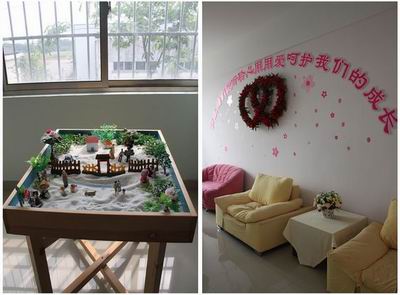 图七:爱心服装屋(服装来自社会各界的捐赠)与宣泄室