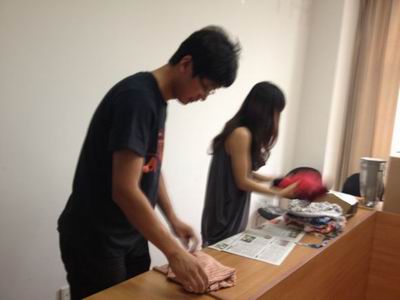 图一:太阳成集团tyc33455cc的研究生同学也参与到这次活动中来,很细心地帮助我们将大人和儿童衣服区分开来,并且一一叠好。