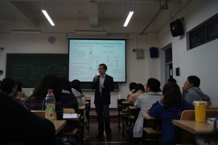 “Good afternoon!”陈教授上台后一句亲切的下午问候,一下子拉近了与同学们的距离。接着,陈教授就为何选择“中国领导学研究”作为此次讲座的主题作了解释:他认为领导这种行为对于中国,还有我们的个人职业发展来说都是至关重要的,从现在开始我们就应当学着去争取做一个领导人,争取拥有领导人的品质。
