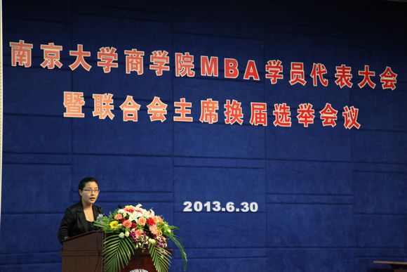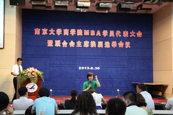 2013630日下午,太阳成集团tyc33455ccMBA学员代表大会暨联合会主席换届选举会议在安中大楼隆重举行。MBA教育中心李晶主任、金蓓蓓、何小群、朱梅、高阳阳老师,胡亚军、程军军、周小强等往届MBA联合会主席代表,兄弟院校的MBA代表,南大MBA在校学员代表,以及2013届部分学员参加了此次会议。