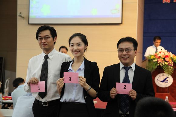根据现场抽签,首先由级B班的吴佩阳发表竞选演讲,他为第十五届联合会提出了“Learn moreDo moreBe more”的定位。随后,2012C班的汤运达以“创造机会,服务未来”的竞选口号开始演讲,在汇报了其任外联部部长期间的工作情况后,提出“辐射开放,广泛服务同学”的工作纲领,着力组建精英团队,打造南大品牌,并提出打造未来商界的南大系的宏伟构想,一句“We can do better”赢得满场喝彩。当来自2012D班青春靓丽、极具文艺范的钟雯登台演讲时,欢呼声再次响起,她提出“追求同学们的效用最大化,整合社会资源,加强学术交流,建设员工会,塑造一流联合会”的工作目标,并辅以相应的具体措施说明。最后“出场”的是来自2012A班的大哥朱颖涛,他因远在德国出差不能亲自到场,所以通过视频和电话连线的方式进行竞选陈述和问答。他就落实MBA中心“珍珠计划”的设想,从“资源整合、成功分享、立足本职、创新工作”四方面进行了阐述,并祝愿南大MBA雄起。