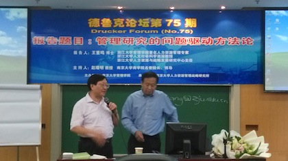 在德鲁克论坛的最后,王重鸣教授和大家就一些问题进行了深入的探讨。他认为对于中国管理学而言,当前最迫切要解决的就是转型背景下的人才问题。他鼓励大家应该去研究那些实际的问题,而不是只是去验证一些关系。发展新概念时,要能阐述这种概念的具有理论基础的应用途径。第75期德鲁克论坛在大家热烈的掌声中落下了帷幕,王教授讲座给我们未来的管理研究提供了很多可以借鉴的思路。对于管理研究者而言,他为我们如何进行规范的研究做出了很好的示范,并对未来的进一步研究指明了方向。