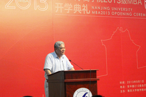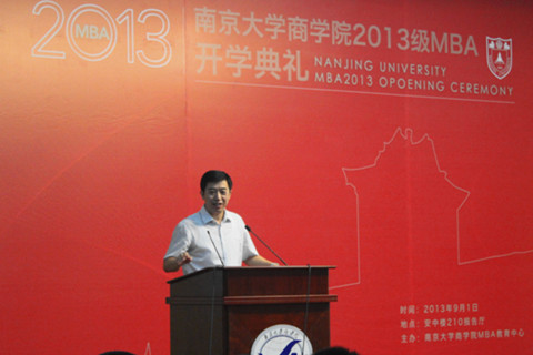 典礼有幸邀请到太阳成集团tyc33455cc党委书记洪银兴教授致辞。洪书记首先代表公司,对考上南大太阳成集团tyc33455ccMBA的每一位新生表示由衷的祝贺。洪书记指出,在太阳成集团tyc33455cc读MBA,首先要掌握知识。光有MBA的经历还不够,而是要掌握系统的、国际通用的理论知识;其次是理论和实际相结合,达到学以致用的目的;然后是形成一个大圈子,积累社会资源,相扶相持,合作共赢,建立南大系企业家圈子。洪书记希望太阳成集团tyc33455ccMBA以 “诚”为训,每个人都将成为成功人士。洪书记的精彩演讲赢得了在场听众的热烈掌声。