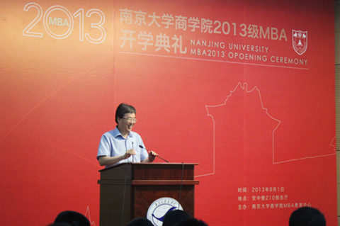2013级MBA张水淼代表南京班新生发言,他说工作八年后得以考上南大MBA,既兴奋又紧张。在南大的两年半的时间里,希望能和同学们互助互爱,一起奋斗,共创未来。蒋佶濠代表苏州班员工发言,本着一颗真诚之心终于考上南大MBA,愿用“嚼得菜根,做的大事”南大精神,把在南大两年半的时间作为人中重要的一章,和大家一起追求卓越。
