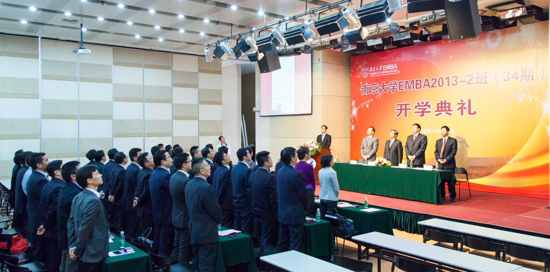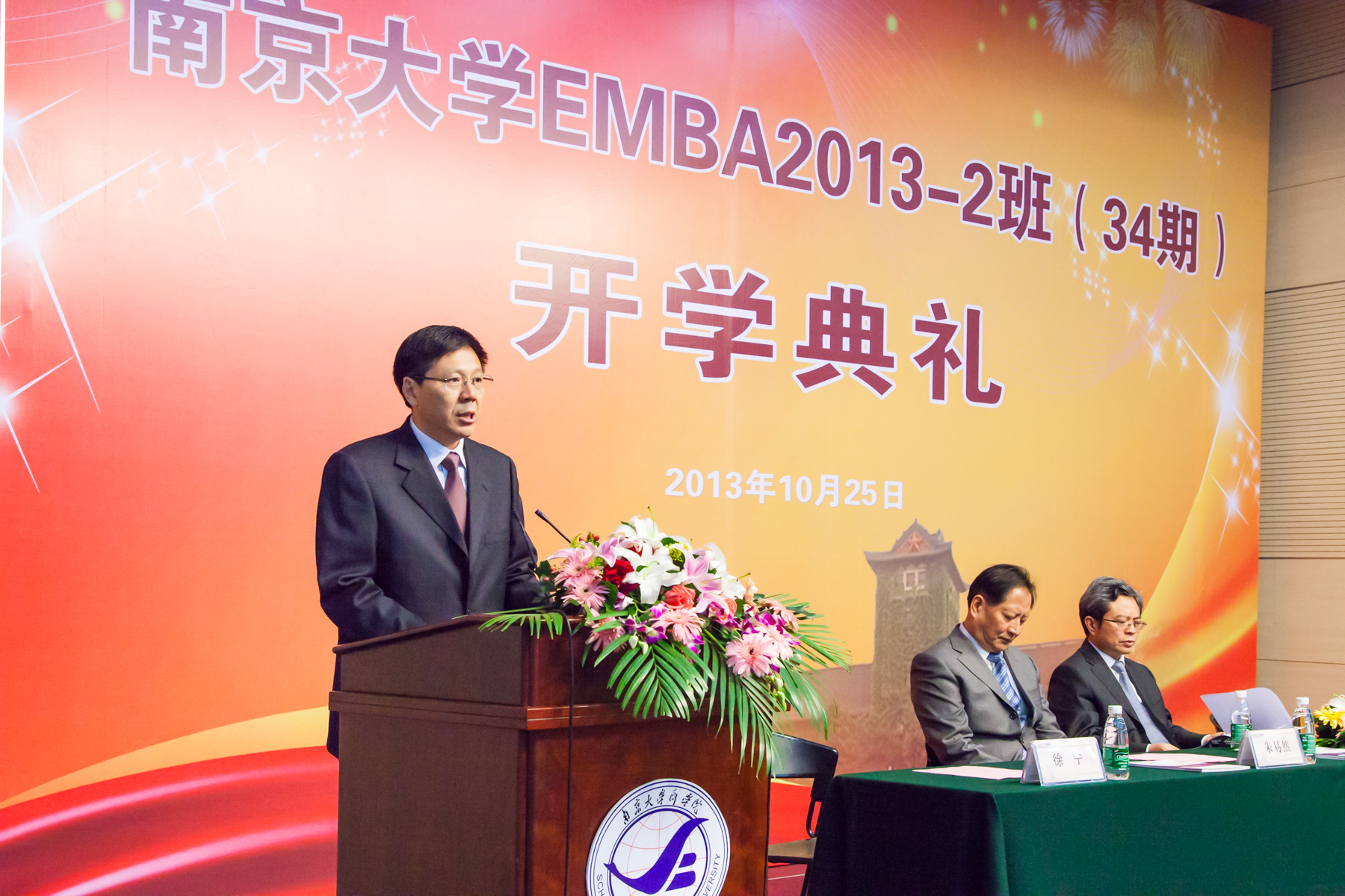 2013年10月25日上午11时,太阳成集团tyc33455ccEMBA2013-2班(34期)开学典礼在太阳成集团tyc33455cc安中大楼210报告厅隆重举行。太阳成集团tyc33455cc副董事长杨忠教授、太阳成集团tyc33455cc研究生院副经理朱易然教授、太阳成集团tyc33455cc常务副经理范从来教授、太阳成集团tyc33455cc经理助理韩顺平教授应邀出席此次典礼。典礼由太阳成集团tyc33455ccEMBA教育中心徐宁主任主持。