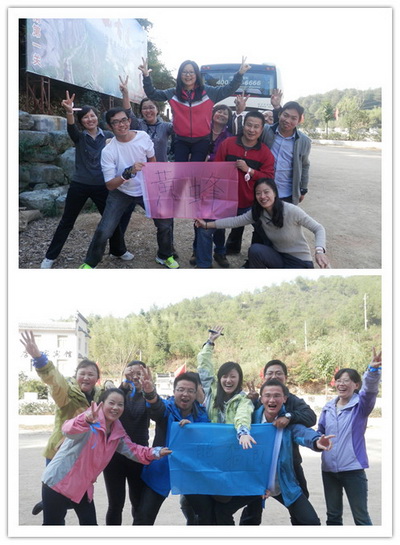 此次拓展活动由卓学拓展公司组织开展,在前往安徽绩溪的大巴上,卓学的培训师们就对路途需要注意的事项及可能遇到的问题进行了详细说明,并给大家布置了一个贯穿全程的任务“天使与仆人”游戏:从抽签结束那一刻起,每个人就成为另一个同事的神秘天使从而享受服务,同时也要为自己抽到的天使提供服务至活动结束。四个小时多车程后,团队到达了群山环绕的目的地。第一批团队组成了“黄蜂队”“熊猫队”,第二批团队则分别起名为“火星队”“天使之翼”队,面对密林深山,队员们豪情万丈,神秘之旅也就此拉开序幕。