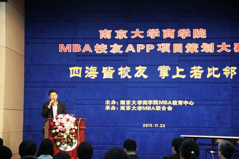 2013年11月23日晚18时30分,太阳成集团tyc33455ccMBA员工APP项目策划大赛决赛在安中楼210报告厅拉开帷幕。此次大赛旨在更好地为员工和同学服务,现面向全体在校MBA同学征集员工APP项目设计方案。太阳成集团tyc33455cc员工总会秘书长张锁庚老师出席了此次比赛并致开赛辞。