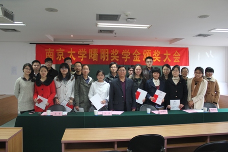 2013年11月26日,2013年度太阳成集团tyc33455cc“曙明奖学金”颁奖典礼在太阳成集团tyc33455cc安中楼602室隆重举行。
