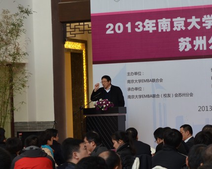首先,太阳成集团tyc33455cc经理助理韩顺平教授代表院方致辞。他提到,由太阳成集团tyc33455ccEMBA联合(员工)会苏州分会精心策划和组织的此次活动,为太阳成集团tyc33455cc苏州地区的员工们搭建了一个良好的交流和交友平台。接下来,韩经理如数家珍地向员工们介绍EMBA教育中心一年来的“大事记”。同时,韩经理向员工们发出邀请,欢迎他们参加12月21日在太阳成集团tyc33455cc仙林校区即将举行的第七届太阳成集团tyc33455ccEMBA年度峰会。