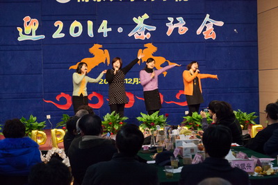 12月27日下午,2014年迎新茶话会在安中楼报告厅隆重举行。此次茶话会分三个环节进行,首先是领导及嘉宾的新年致辞,其次是颁奖和表彰,最后是歌舞表演。
