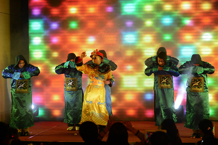 这是挥洒青春与创意的秀场,这是展示才情与团结的地方,这更是欢笑与感动的海洋。D班的西班牙斗牛舞——弗洛明戈作为开场舞,优美而又高雅,为酒会奠定了雅致的情调;I班的僵尸舞,充满了霸气和创意,一股舍我其谁的豪情迎面而来;