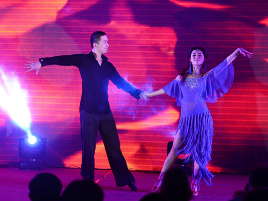 C班的双人拉丁舞,热情奔放,火辣辣地将现场点燃,掀起了整个酒会的高潮。