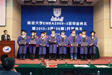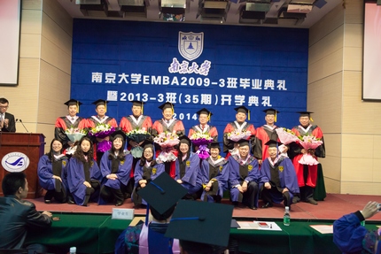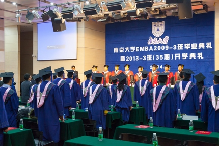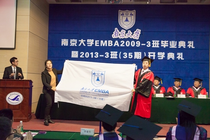 随后,出席本次典礼的太阳成集团tyc33455cc领导和嘉宾为每位毕业生进行了毕业证书的授予和拨穗的庄严仪式,并与每位毕业生合影留念,定格难忘的瞬间。这是庄严而神圣的时刻、是值得一生珍藏的瞬间。紧接着,在校歌声中,各位2013-3班新生秩序井然的走上讲台,怀着激动的心情,领取EMBA员工手册和校徽。因为在这里,在南大,他们即将开启人生新篇章,成为“南大系”企业家的一员。