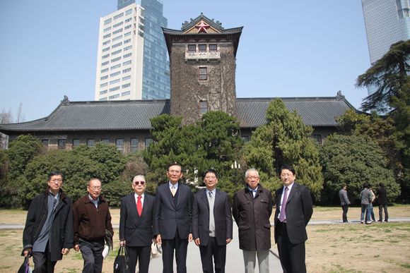 会议结束后,邱正雄教授一行人在裴平教授,MBA中心老师及南大台湾员工的陪同下,参观了南大鼓楼校园,在南大标志性建筑北大楼前合影留念。