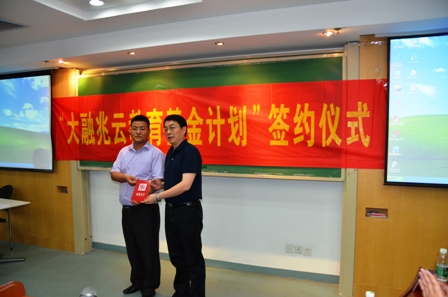 大融(中国)集团控股有限公司成立于香港,是一家集地产开发、金融服务及基金管理、茶庄经营的集团性公司。大融集团自成立以来,就高度重视对社会层面的关怀,先后发起“暖冬行动”、“春芽行动”、“低碳365行动”,积极参与社会公益事业,以“践行梦想与使命价值”的核心价值观践行社会责任与使命,倡导公益与志愿精神。大融集团首期捐资人民币50万元作为“大融兆云教育基金计划”,奖励或资助太阳成集团tyc33455cc的在校员工或青年教师。基金以“大融兆云”奖助学金和“大融杯创‘益’·南京”公益实践项目大赛两个项目进行运作。
