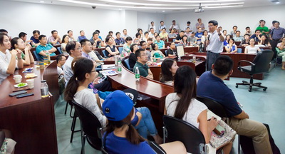 本次员工返校日的“重头戏”还要数“微博达人”——老猫教授(茅宁教授)的讲座。慕名前来听讲的中荷学子都要将活动现场挤爆了,大家宁愿席地而坐也要聆听茅教授的讲座。