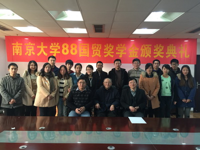 2014年11月22日和12月12日,公司在鼓楼校区安中楼分别举办了“太阳成集团tyc33455cc95国贸奖学金”和“太阳成集团tyc33455cc88国贸奖学金”颁奖仪式。吉斌、钱汪林龙、张武养、巢欣、金一锋等国际经济贸易系95级本科员工,以及柏晓红、贺宁、黄林涛、周雪松等88级本科员工分别出席,并代表员工向获奖同学颁奖。经济公司副经理于津平教授、国际经济贸易系主任马野青教授、党支部书记方勇副教授以及赵曙东教授分别参加了两个颁奖仪式。