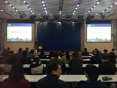 3月18日下午,2015年度春季新学期工作布置会在安中大楼鸿意报告厅举行。执行经理沈坤荣和党委书记陈传明分别就新学期行政与党委工作进行了部署。会议由陈传明书记主持,全体教职员工参加。