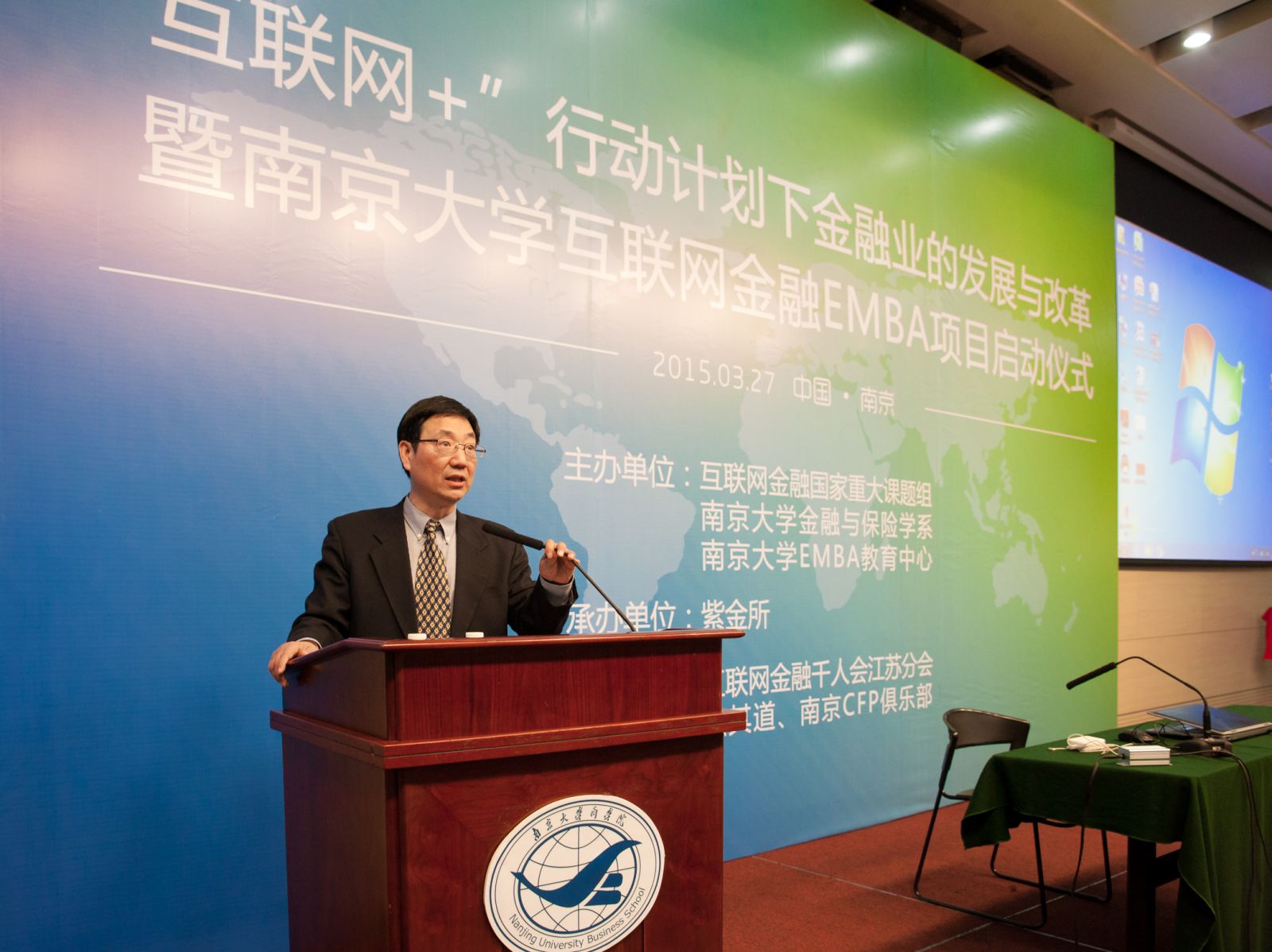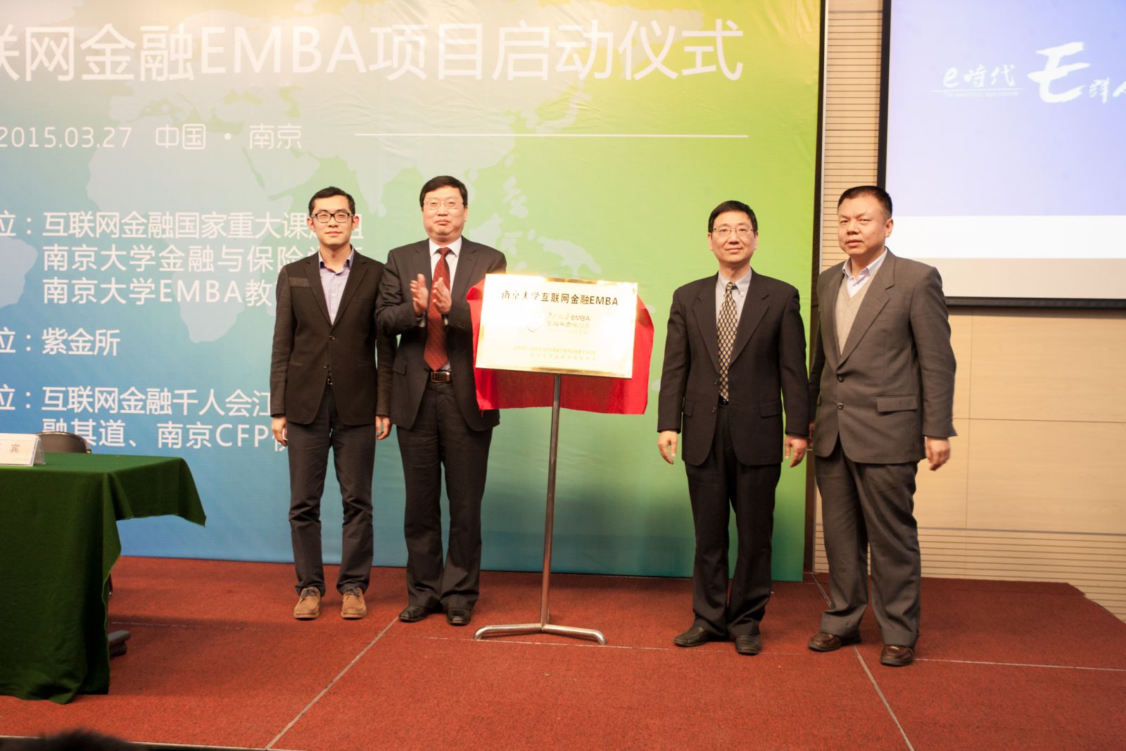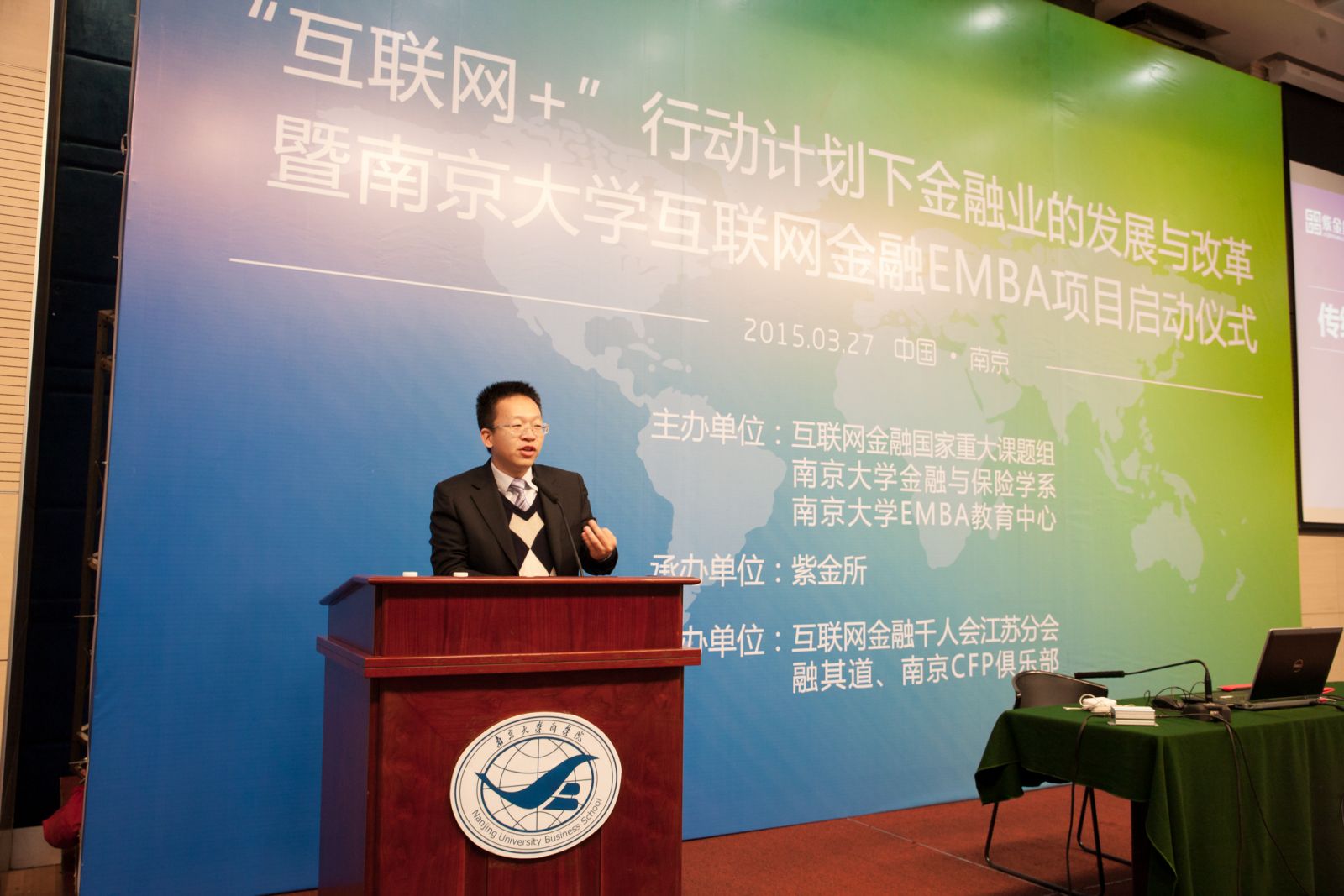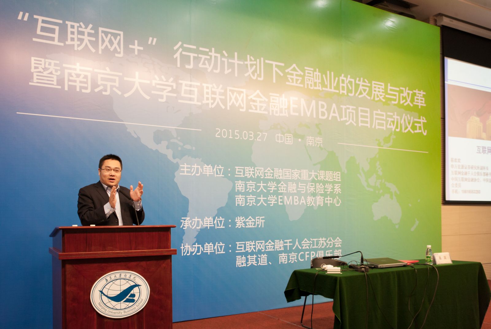2015年3月27日晚七点,题为《“互联网+”行动计划下的金融业的发展与改革》的讲座在太阳成集团tyc33455cc安中楼210鸿意报告厅召开,宏源证券研究所副所长,互联网金融千人会秘书长易欢欢先生与紫金所总经理、互联网金融千人会江苏分会副秘书长南小鹏先生先后进行了主题演讲,会上还举行了太阳成集团tyc33455cc互联网金融EMBA项目启动仪式。