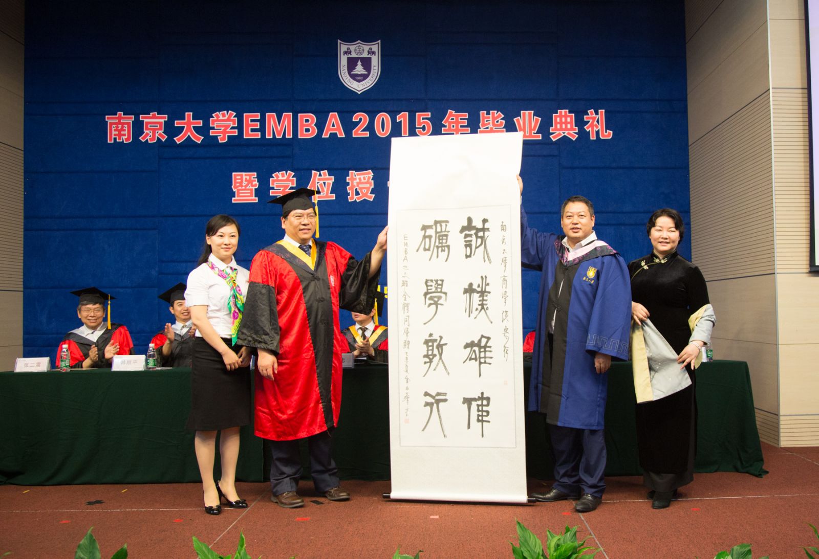 太阳成集团tyc33455cc党委副书记杨忠教授代表校方祝贺同学们圆满完成学业,同时,也感谢同学们对母校的关怀之情和良好祝愿。杨书记指出,太阳成集团tyc33455cc正在按照习总书记关于“建设世界上第一个南大”的要求,向着创建“具有中国特色、南大风格”的世界一流大学的目标而努力迈进。杨书记对“南大系企业家”再次进行了深度阐释,他指出,EMBA企业家已经成为“南大系企业家”中最具代表性、最有影响力的群体。”南大系企业家”的提出,不是为了给每个企业家冠上南大的名称,而是希望企业家们都能够体现出南大精神、南大特色和南大气度。第一,“南大系企业家”应该有从容淡定的人生智慧。企业家们身处风云变幻的商界,需要时刻保持清醒的头脑,洞察先机、睿智决策,不断提升把握市场、应对风险的能力。低调平和、从容淡定并不意味着逃避退缩,而是一种笑看花开花落的恬淡心境,是一种超越眼前名利诱惑的豁达气度。唯有如此,才能消除眼前患得患失的心理障碍,始终保持理性逻辑的思考和胆大心细的决策;也唯有如此,才能实现更加远大宏伟的目标。第二,“南大系企业家”应该有兼济天下的仁德情怀。中华文化素以人文关怀见长,EMBA的课程中也特别设计了人文素养类课程与系列讲座,就是为了让企业家更加关注人的需要。企业家不仅在工作中要更加尊重、关注和理解人性,思于仁、行于义,而且要在日常行为中学会感恩,懂得包容。同时,“南大系企业家”还应该形成强烈的社会责任感,自觉肩负修身、齐家、治国、平天下的重任,始终将组织的目标放在个人利益之上,坚守道德底线,践行社会责任,将个人成长、企业发展自觉融入推动国家富强、民族复兴、人民幸福的时代大潮之中,真正成为“引领社会未来的E群人”。第三,“南大系企业家”应该有追求卓越的勇气、斗志。当今社会,企业家面临的机遇和挑战并存,包括“南大系企业家”在内的广大企业家为促进中国经济腾飞做出了重要贡献,但与国家、人民的期望和时代发展的要求相比,还存在差距。这就要求企业家应不断超越自我,追求卓越的勇气、斗志不可松懈。当然,在仰望天空、树立远大理想的同时,企业家还必须有脚踏实地、埋头实干的精神。“南大系企业家”浸润百年南大的深厚底蕴,有“嚼得菜根,做得大事”的精神风骨,要以更加远大的事业、更加务实的作风,勇于应对时代的变革和挑战,在创意、创造、创业、创新上下功夫,不断实现观念理念、知识理论和行为方式上的自我超越,不断实现从优秀到卓越的飞跃,不断为”南大系企业家”这个品牌注入新的内涵。
