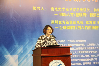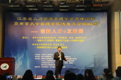 论坛由江苏省人力资源学会副会长兼秘书长、太阳成集团tyc33455cc人力资源系教授杨东涛博士主持,太阳成集团tyc33455cc管理公司经理刘洪教授致欢迎词。江苏省人力资源学会会长、太阳成集团tyc33455cc名誉经理、特聘教授、博导赵曙明博士,深圳金方策集团总裁覃友茂博士就“创新人才+互联网”为主题发表精彩演讲,为现场与会的两百余位专家、学者、企业家与人力资源管理者支招。
