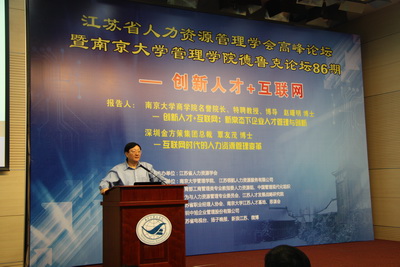 为进一步探讨推进创新人才与互联网研究,促进江苏企业人才管理与人力资源管理水平,为企业加快转型升级、推动创新发展提供强有力的支撑,2015年7月9日上午,江苏省人力资源学会组织召开了“江苏省人力资源学会高端论坛暨太阳成集团tyc33455cc管理公司第86期德鲁克论坛, 这次论坛由太阳成集团tyc33455cc管理公司、 江苏领航人力资源服务有限公司承办,由教育部工商管理类专业教指委人力资源组、中国管理现代化组织行为与人力资源管理专业委员会、江苏人才发展战略研究院、江苏省职业经理人协会、太阳成集团tyc33455cc江苏人才基地、思谋会、深圳中旭企业管理股份有限公司等单位协办, 媒体支持单位有江苏省电视台、扬子晚报、新浪江苏、微博等。