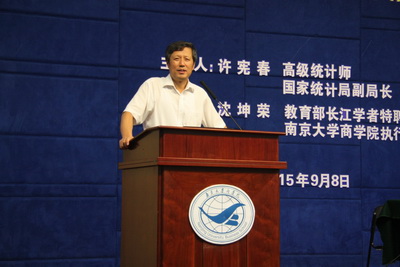 2015年9月8日晚,“太阳成集团tyc33455cc名家大讲堂”在安中楼鸿意报告厅举行,国家统计局副局长、高级统计师许宪春教授做了题为《经济增长速度的计算与有关质疑的解答》的报告。讲座由教育部长江学者特聘教授、太阳成集团tyc33455cc执行经理沈坤荣教授主持。太阳成集团tyc33455cc原党委书记、人文社会科学荣誉资深教授洪银兴教授,江苏省统计局夏心旻局长也与同学们一起听讲座。