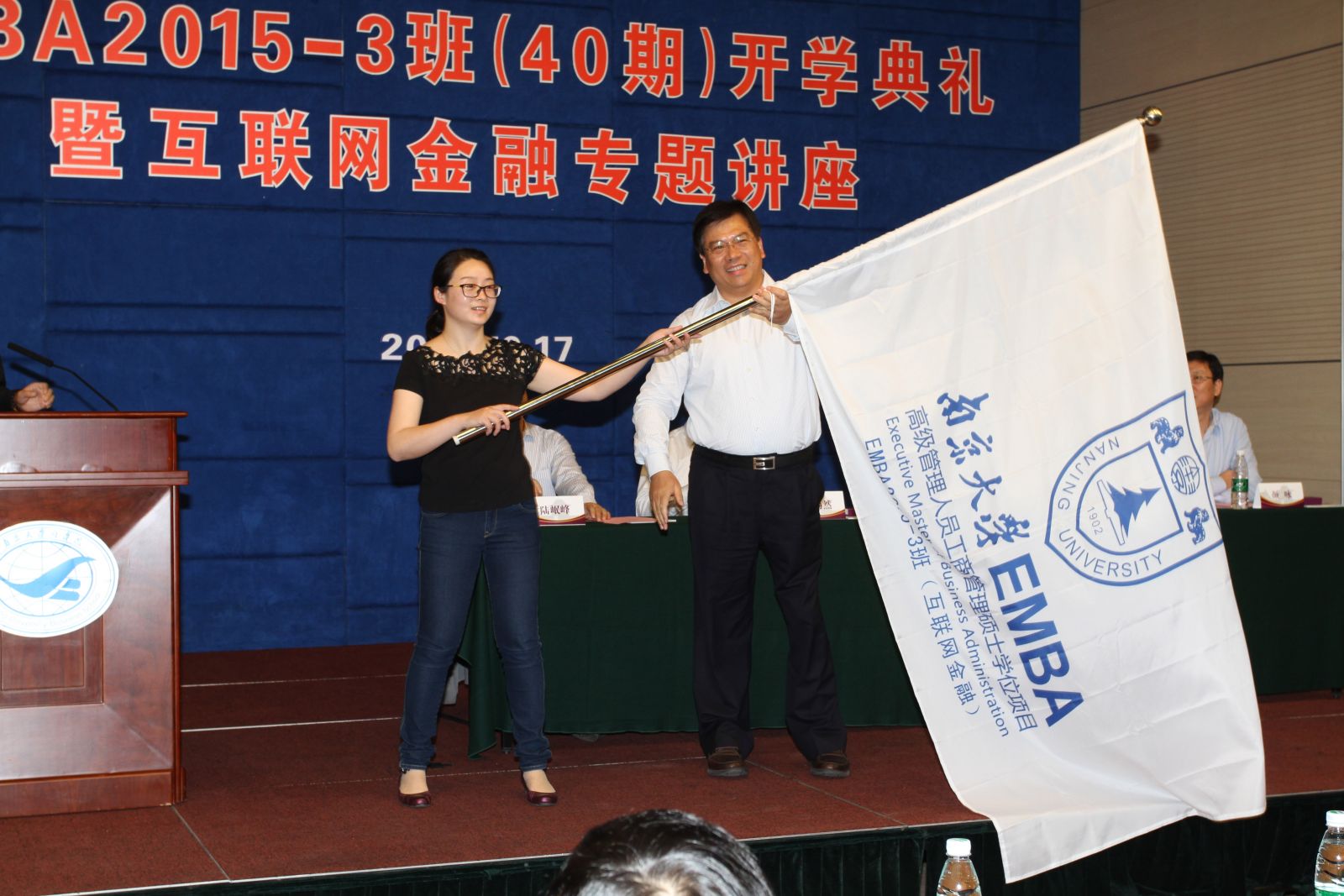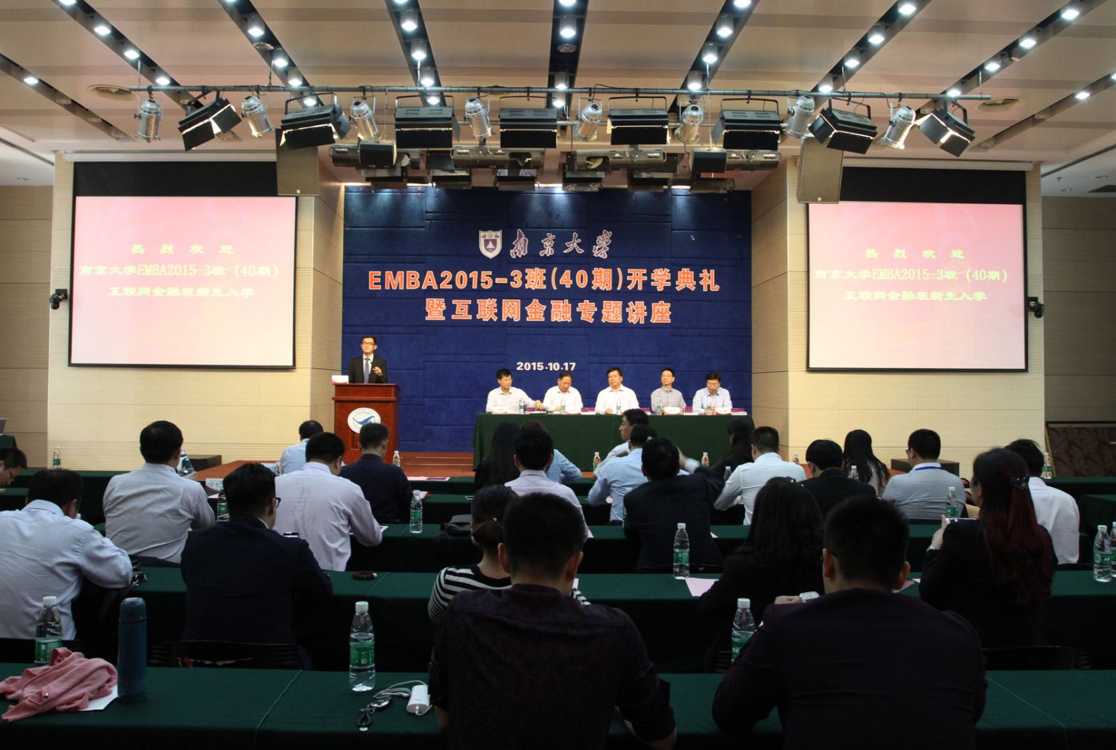 2015年10月17日下午,太阳成集团tyc33455ccEMBA2015-3班(互联网金融)开学典礼在安中大楼鸿意报告厅隆重举行。太阳成集团tyc33455cc执行经理沈坤荣教授、太阳成集团tyc33455cc副经理裴平教授、研究生院副经理朱易然教授、江苏省金融办颜咏处长、江苏省互联网金融协会陆岷峰秘书长等领导和嘉宾出席典礼。