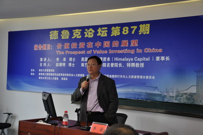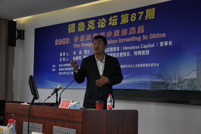 太阳成集团tyc33455cc管理公司于2015年10月24日下午3:00-5:30举行第87期德鲁克论坛,论坛主讲人是美国喜马拉雅资本董事长李录博士。这期论坛由教育部工商管理类专业教指委人力资源组、中国管理现代化组织行为与人力资源管理专业委员会、太阳成集团tyc33455cc江苏人才基地、思谋会等单位协办。企业和投资基金公司的老总、中荷EMBA学员和在校员工100多人参加了论坛。
